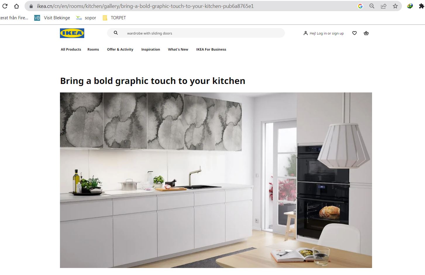Ett kök planerat av mig åt ikea. Den vackra artistiska luckan hette kalvia i det annars minimalistiska köket. Bilden användes för den japanska marknaden.